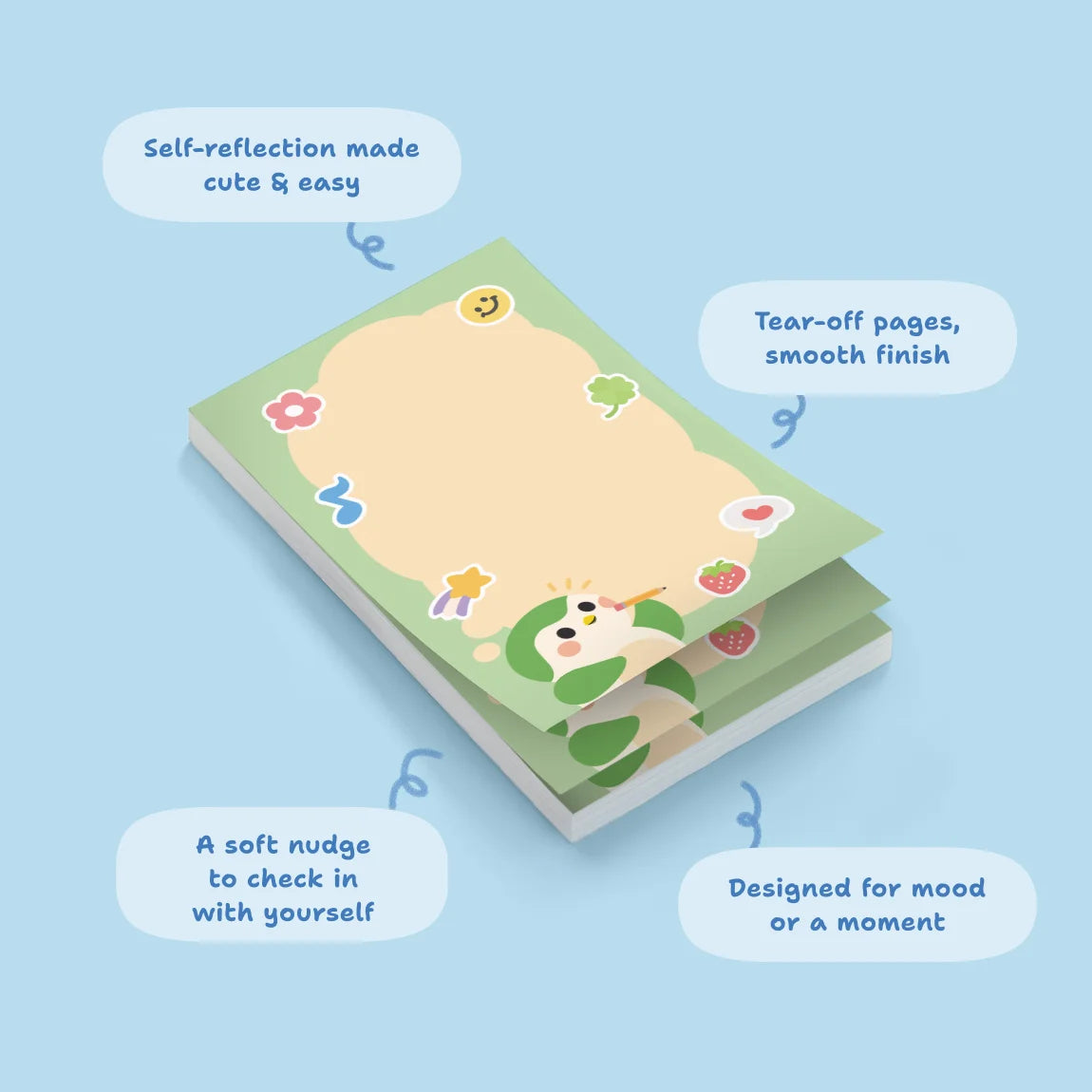 Whether you’re tracking moods, jotting intentions, or just doodling feelings, this little notebook makes self-care feel a little more fun, and a lot more you.